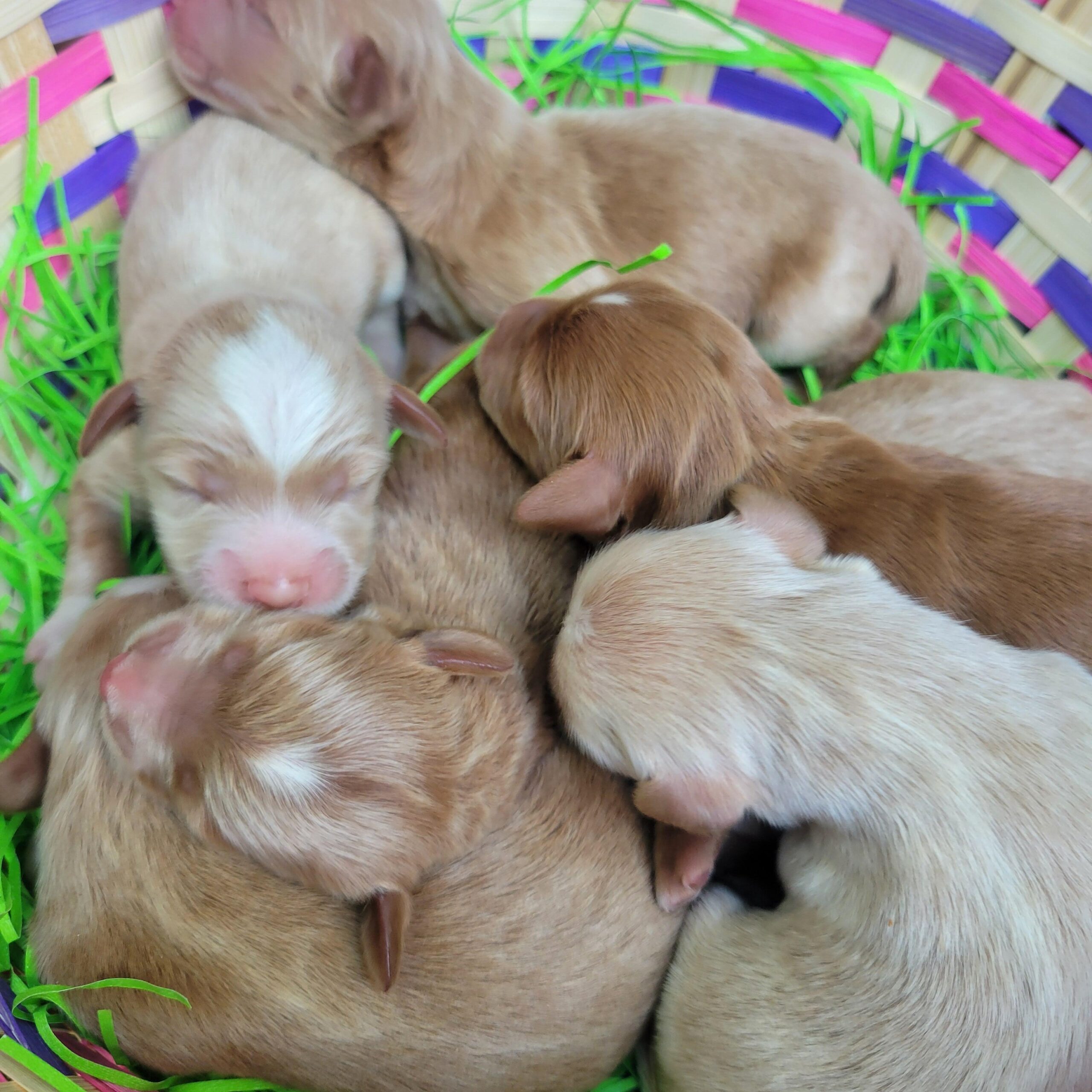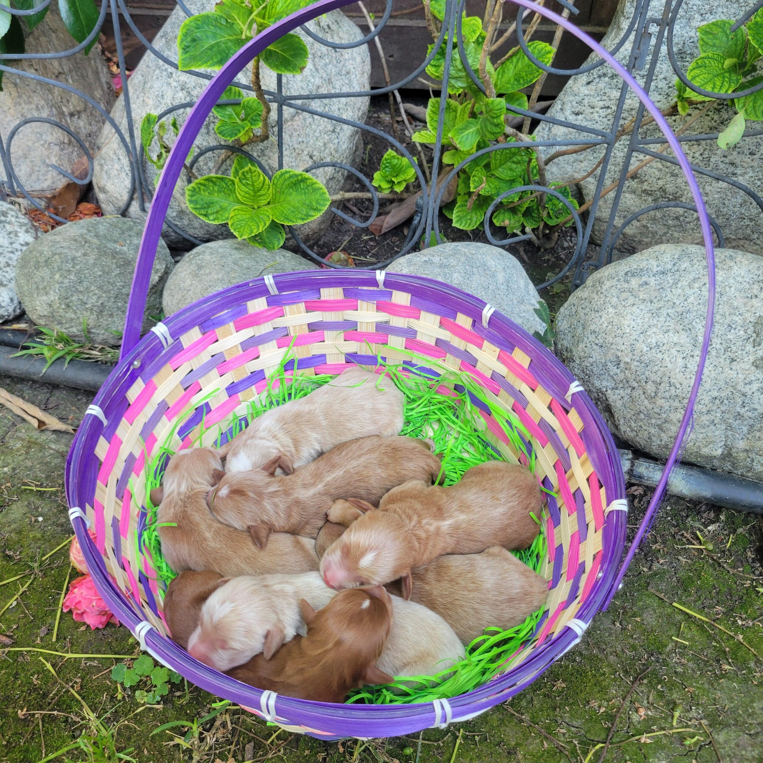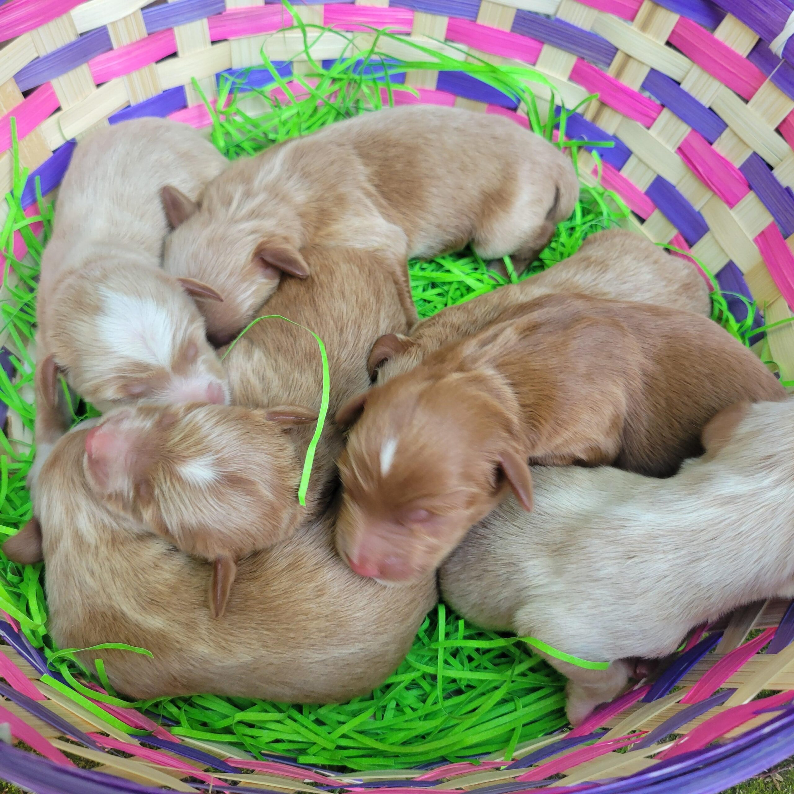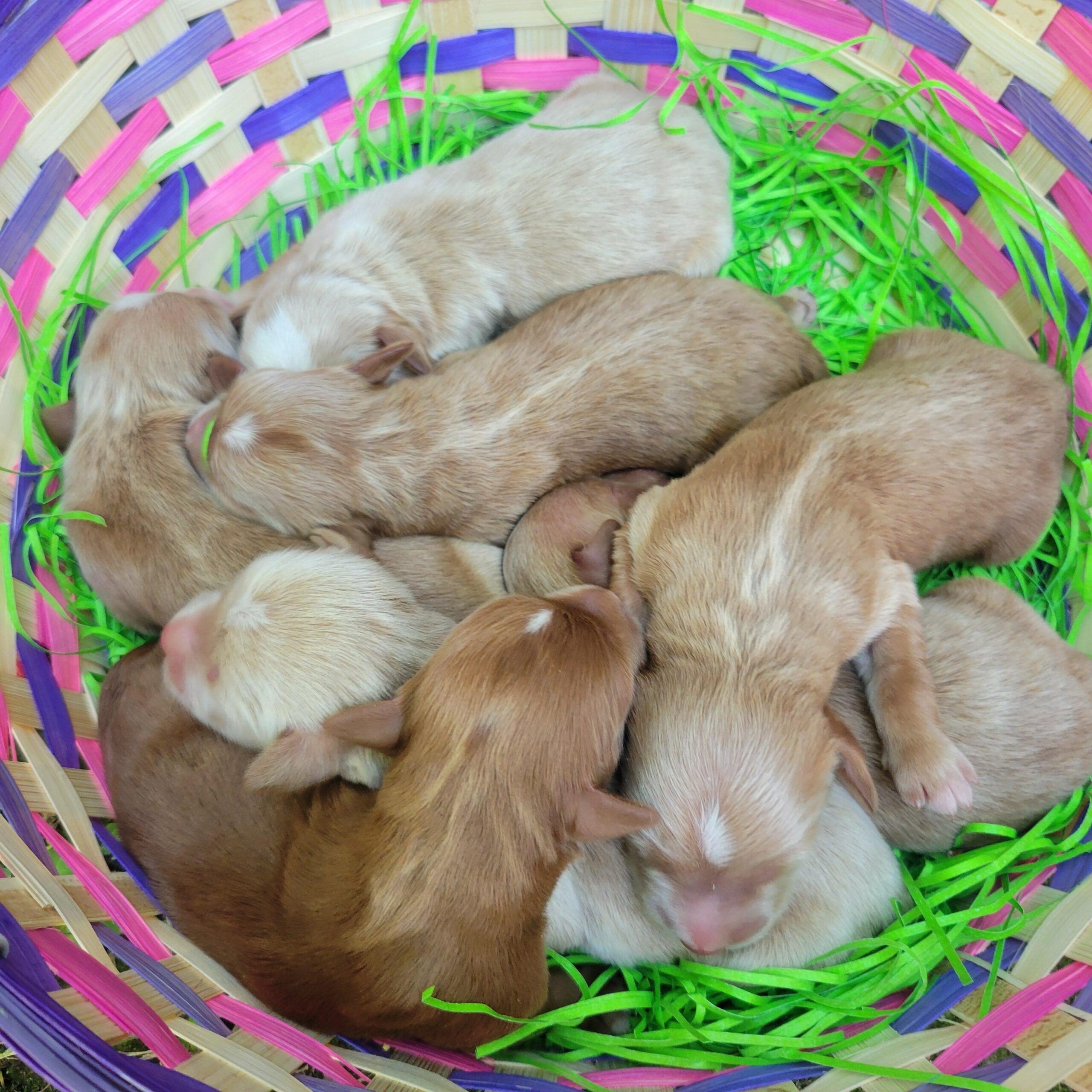 The Easter Bunny brought us Easter Puppies! Roe’s pups are just 1 day old and are just the cutest little things!